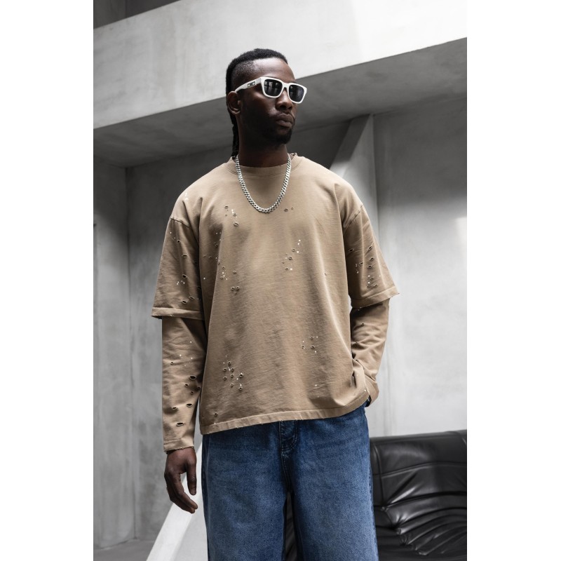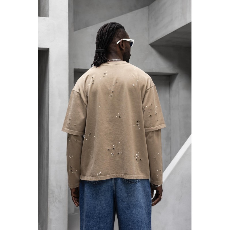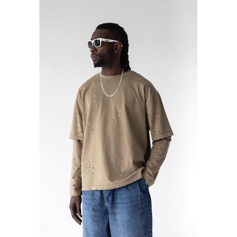 Çift Parça Renge Renk Beyaz Boya Detaylar Bej Sweatshirt